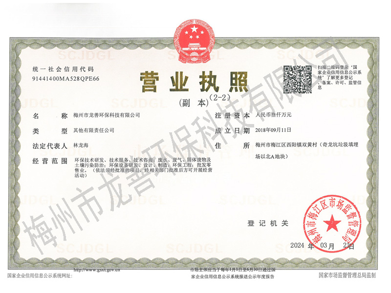 梅州市龍善環(huán)保科技有限公司為龍善環(huán)保股份有限公司(簡稱“龍善環(huán)保”)子公司。龍善環(huán)保于1995年12月成立,注冊資本為人民幣6,000萬元,總部位于深圳市南山區(qū)月亮灣大道2078號兆龍大樓16層。公司經(jīng)生態(tài)環(huán)境部、廣東省生態(tài)環(huán)境廳、深圳市生態(tài)環(huán)境局、深圳市交通運(yùn)輸委員會、深圳海事局等部門許可專業(yè)從事陸地和海洋環(huán)境保護(hù)產(chǎn)業(yè)的高科技民營企業(yè),主要經(jīng)營業(yè)務(wù)包括工業(yè)廢物收運(yùn)、資源化利用和無害化處理處置、海洋船舶污油水接收和集中處理處置、突發(fā)環(huán)境事故清污應(yīng)急處置等......